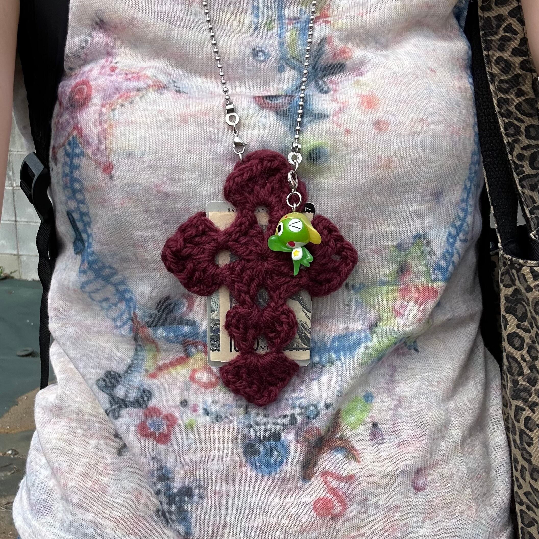 十字架 ネックレス カードケース ネックレスタイプ 定期ケース クレジットカード クレカ 首から下げる かぎ針編み 編み物 鍵あみ ユニセックス