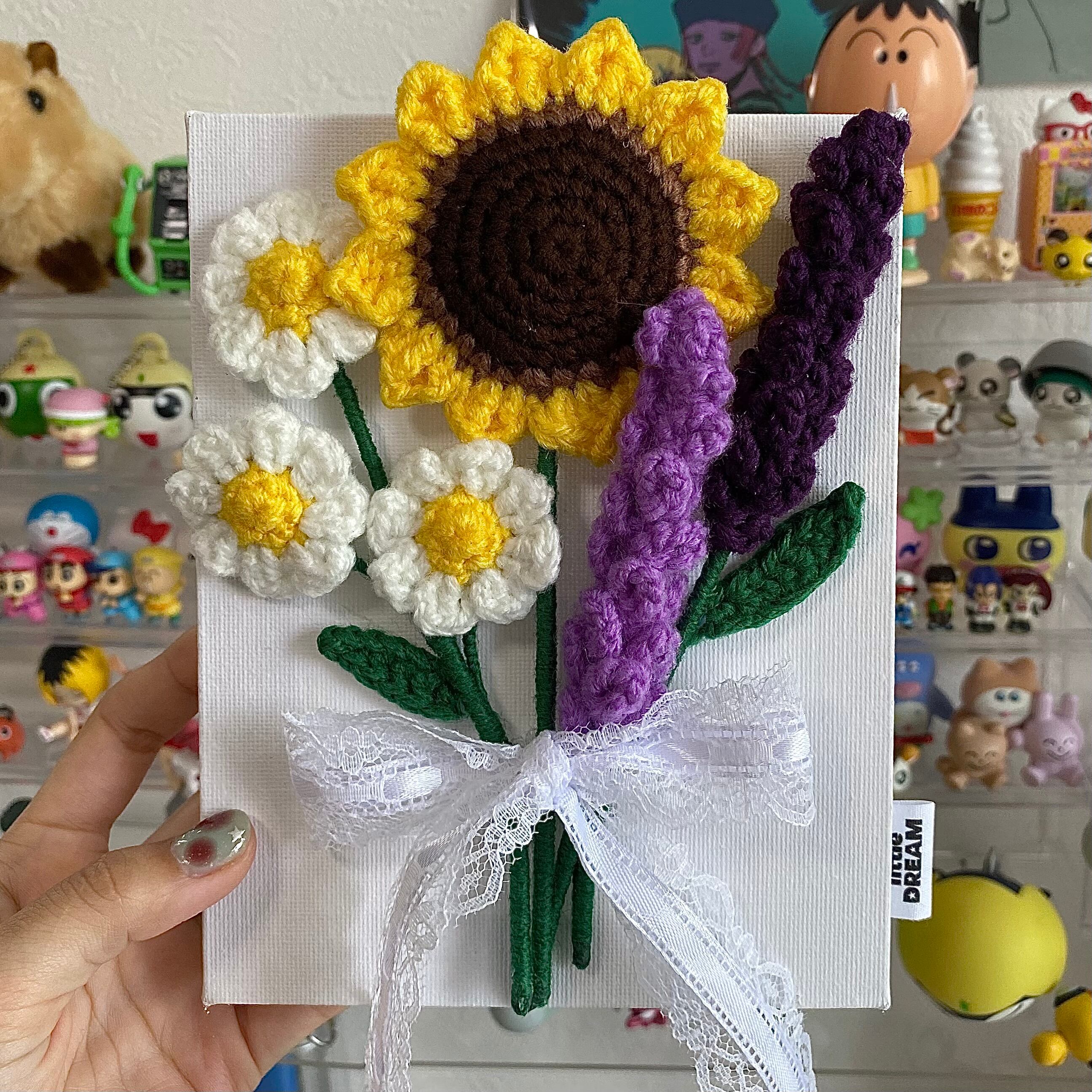 枯れない花 花 花束 かぎ針編み 編み物 手作り ハンドメイド はな フラワー デイジー ラベンダー ひまわり チューリップ 枯れない花束 キャンバス